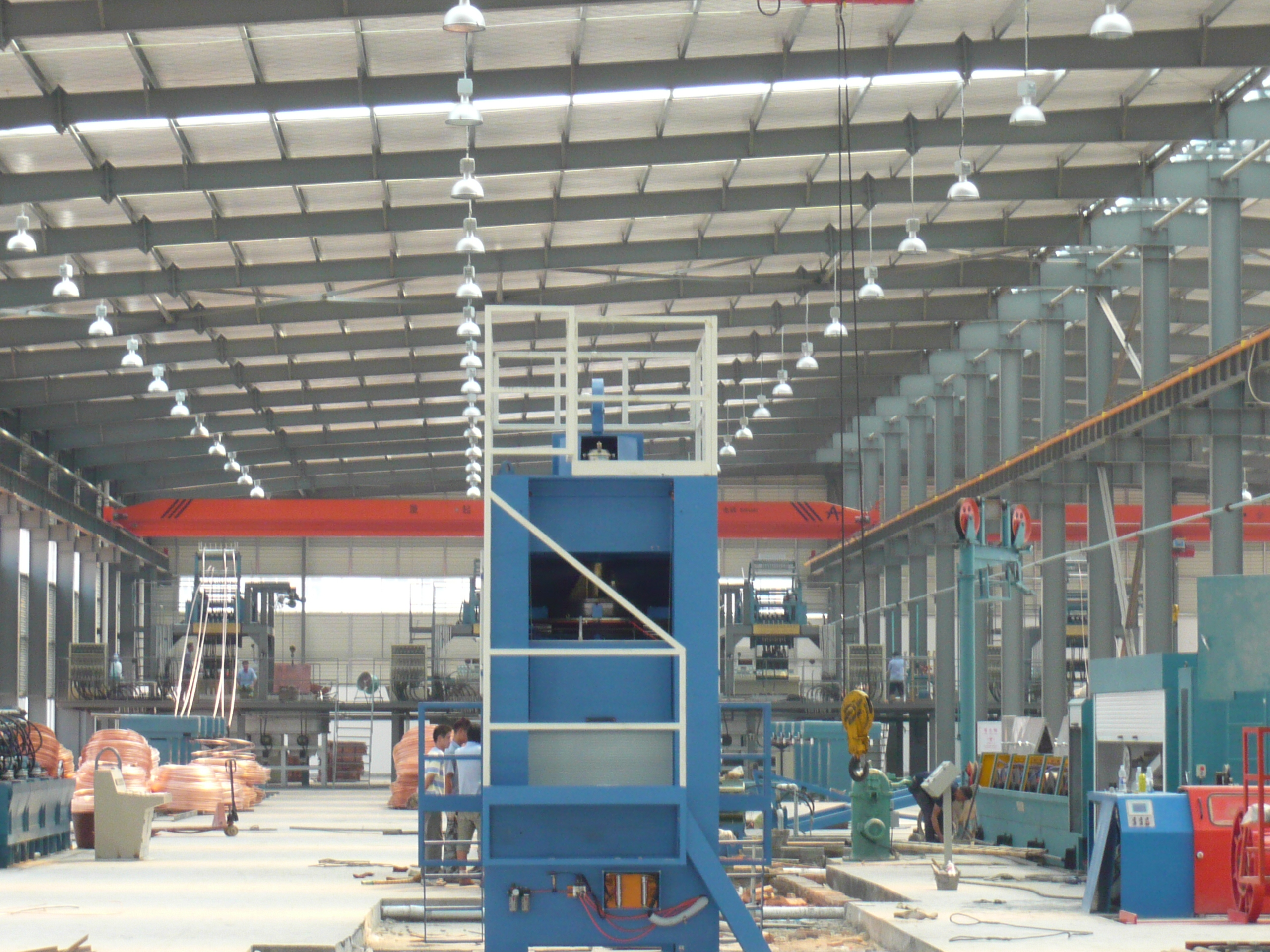太阳铜业铜杆车间一期工程,该项目建筑面积11000平方米,单层钢结构极砼框架结构,外墙板为我司首次使用的镀铝锌波形板。此工程地建及钢构均为我司总承包,于2009年4月18日开工,该工程通过合理划分施工段,地建、钢构及业主设备安装合理穿施工,于2009年10月初顺利竣工并投厂,施工进度级质量得到建设单位的肯定,并将该工程二期工程交由我司继续总承包施工。