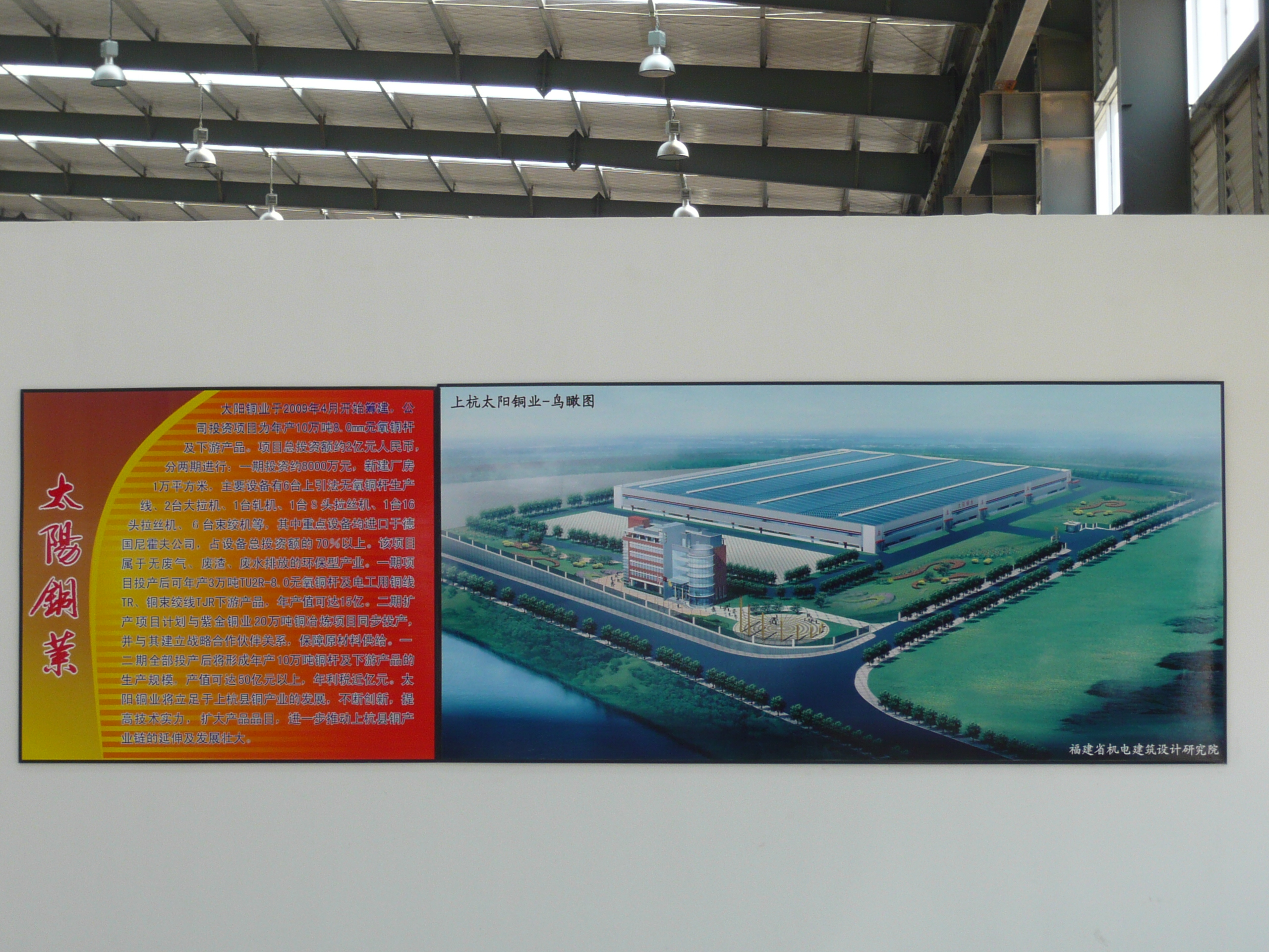 2009年2月24日下午,上杭县政府与福建南平太阳电缆股份有限公司举行10万吨铜杆及下游产品项目签约仪式。项目总投资1.8亿元,该项目分二期实施。